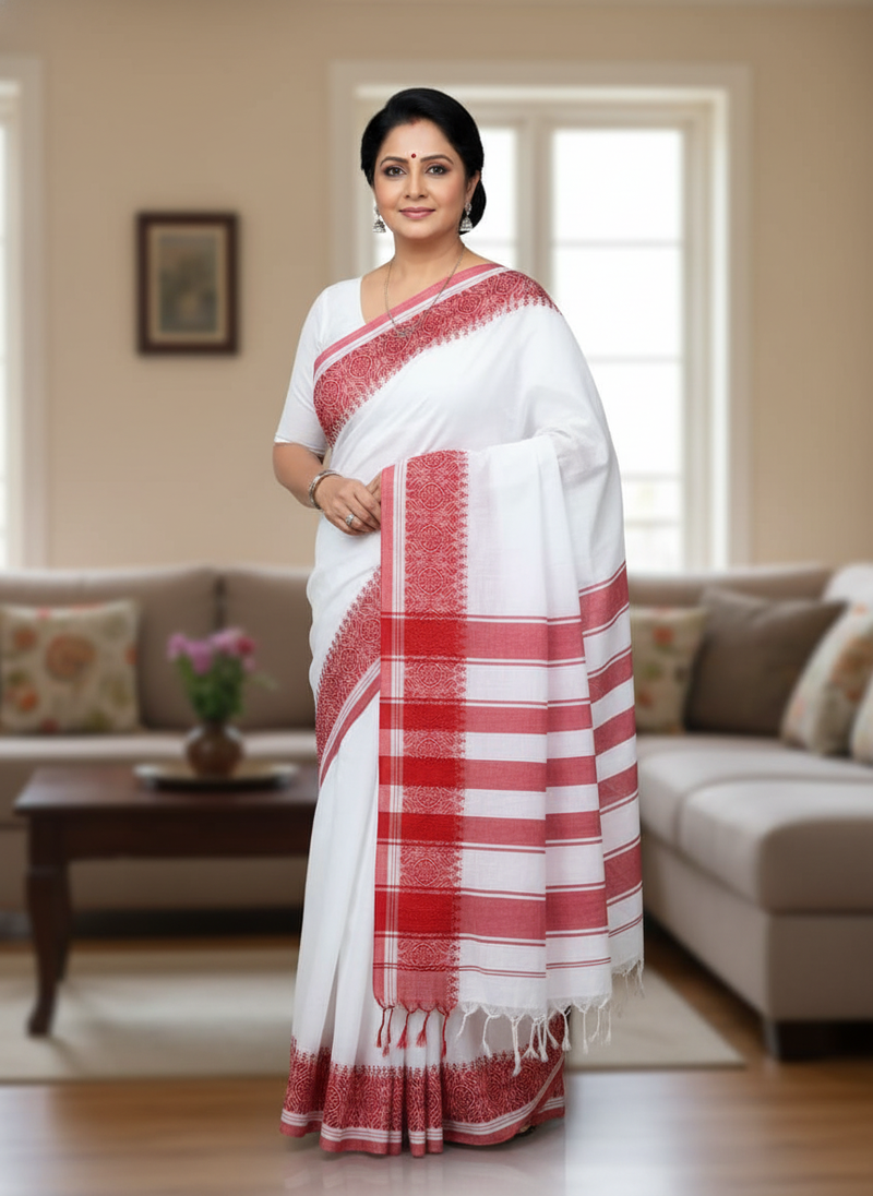 | Product Name | White Bengali Khadi Cotyton Saree Stylish For Women | |