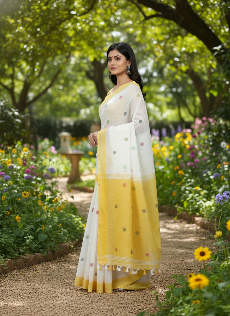 | • | Saree | : | Color- Yellow / Fabric- Bengal Handloom |