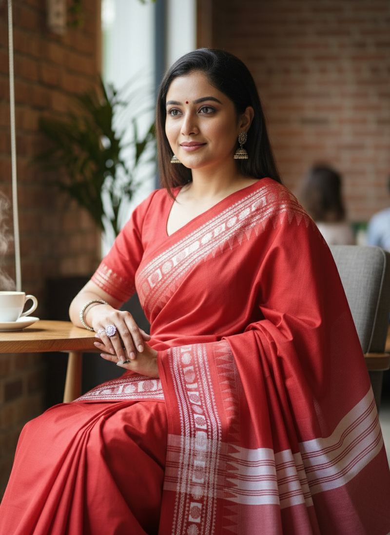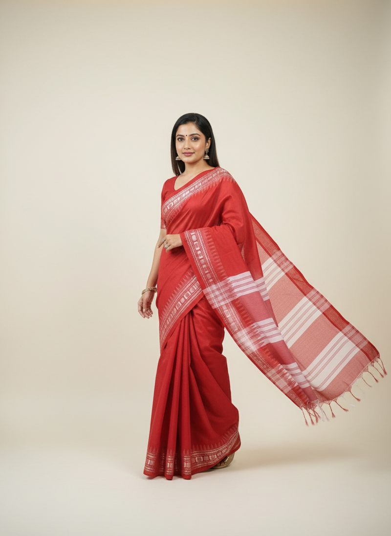 | Product Name | Red Bengali Khadi Cotyton Saree Stylish For Women | |