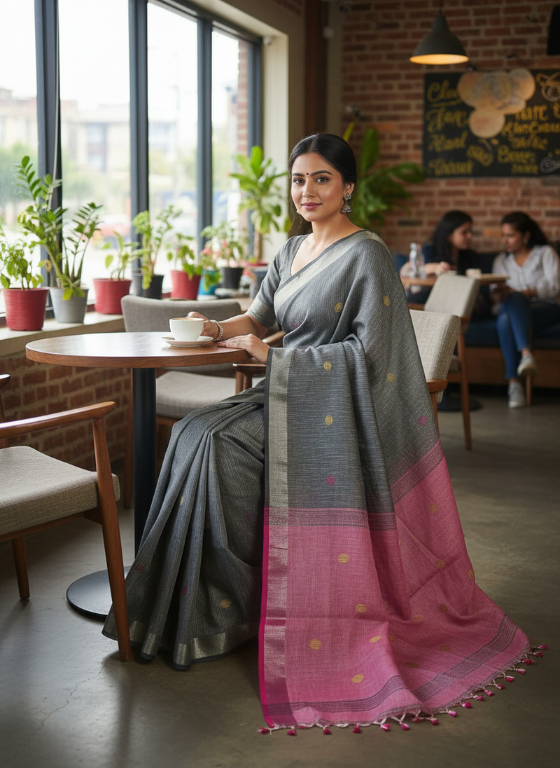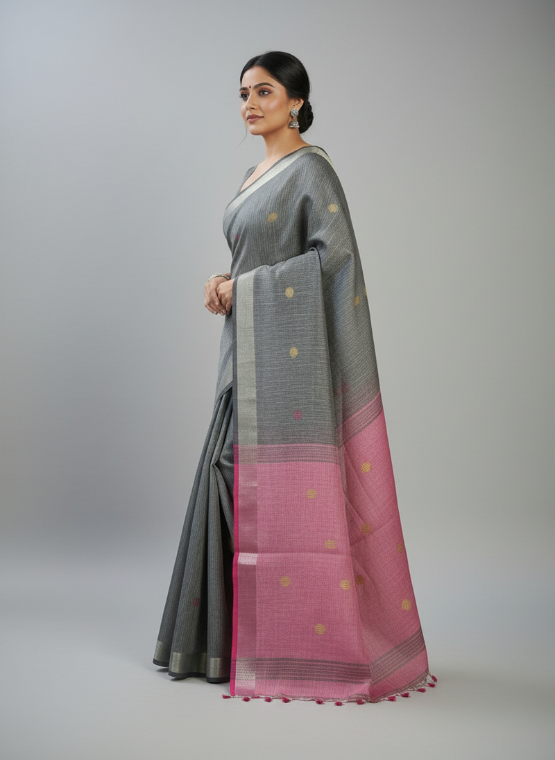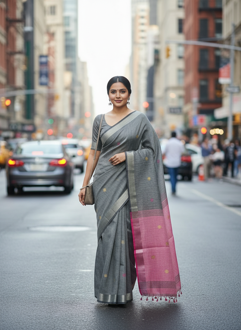 | Product Name | Grey Bengali Khadi Cotyton Saree Stylish For Women | |