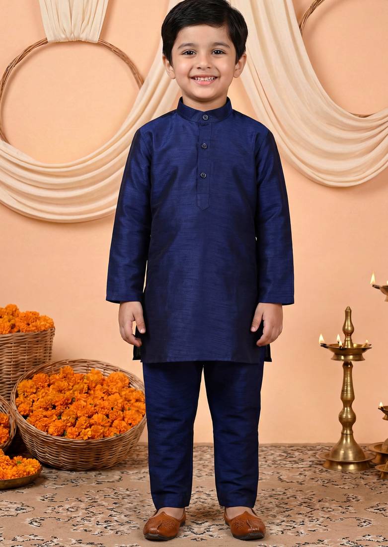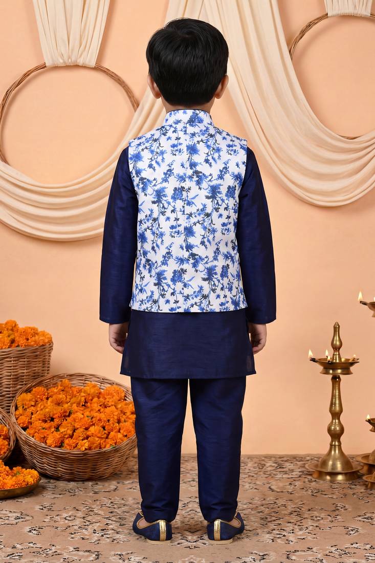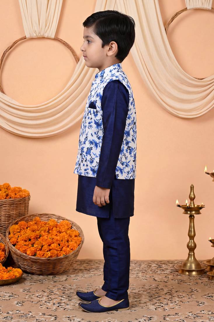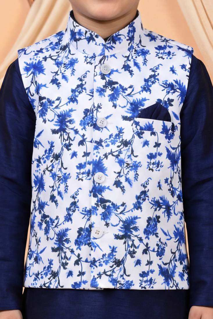 | Product Name | Boys Navy Blue Cotton Blend Kurta Pyjama Set With Floral Vine Printed Waistcoat | |