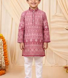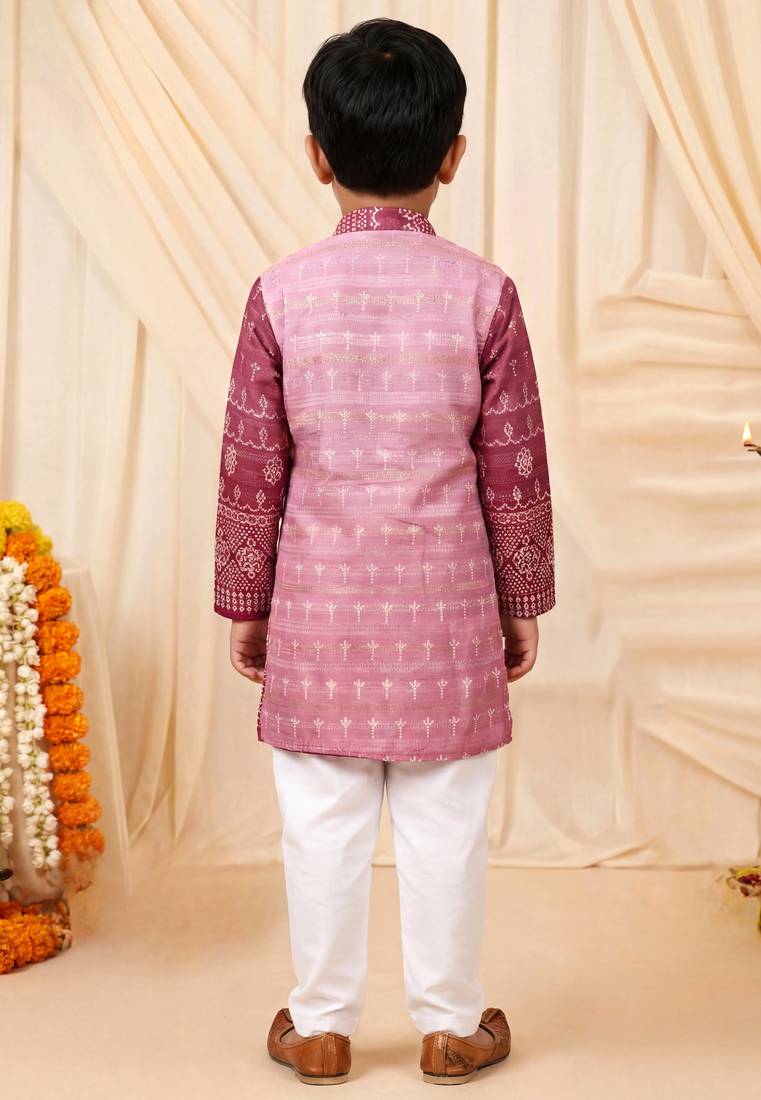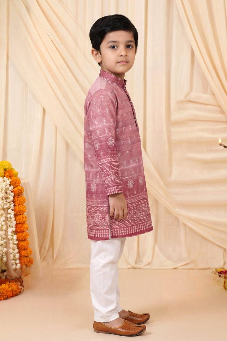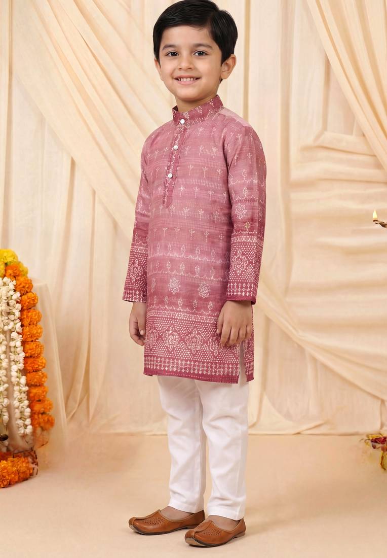 Boys rose pink premium rayon heritage bandhani motif print kurta pyjama set