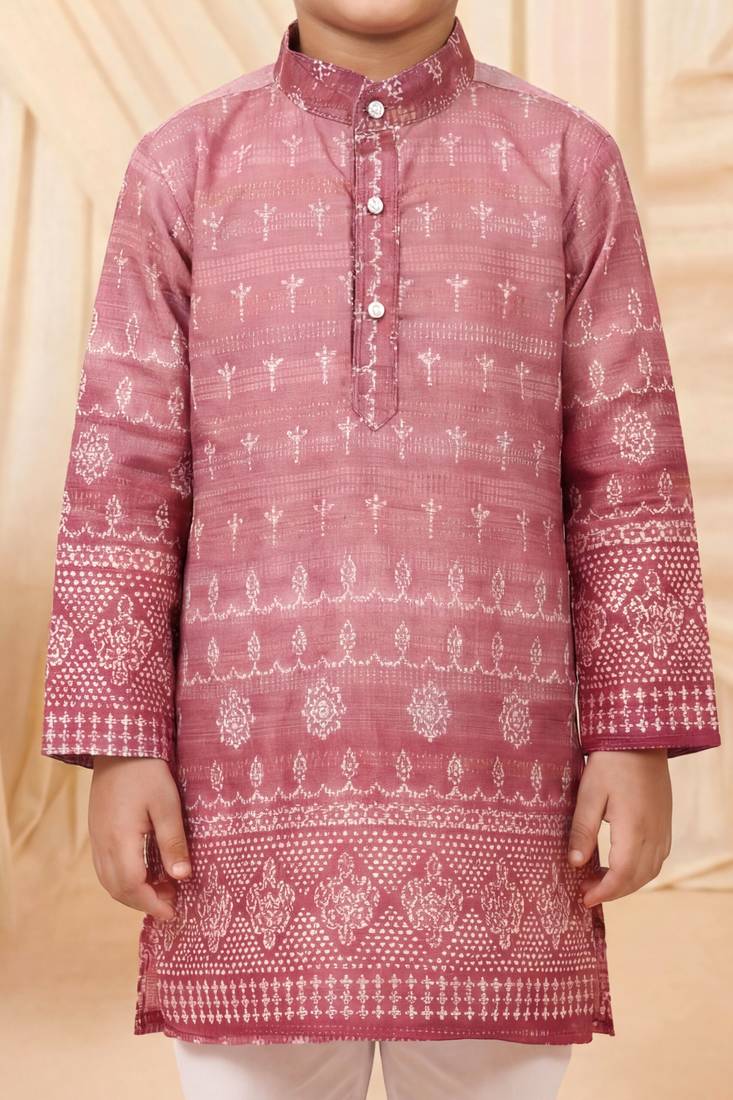 | Product Name | Boys Rose Pink Premium Rayon Heritage Bandhani Motif Print Kurta Pyjama Set | |