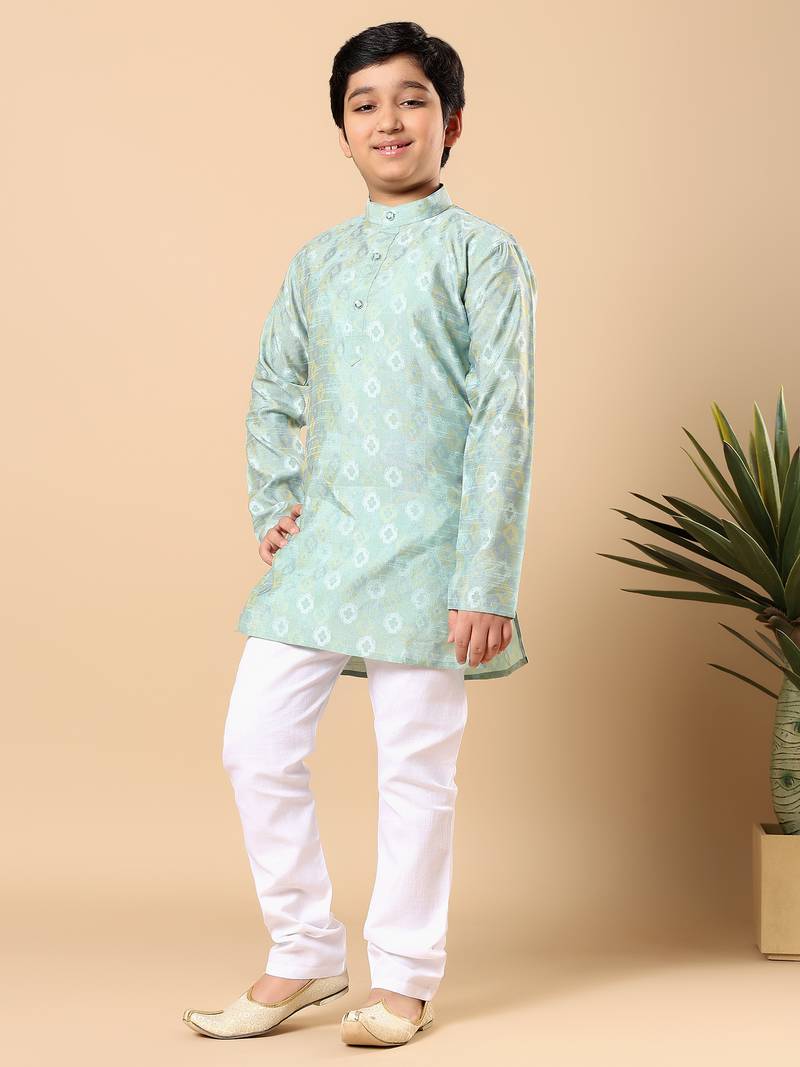 | Product Name | Boys Sea Green Cotton Blend Ikat Woven Pattern Kurta & Pyjama Set | |