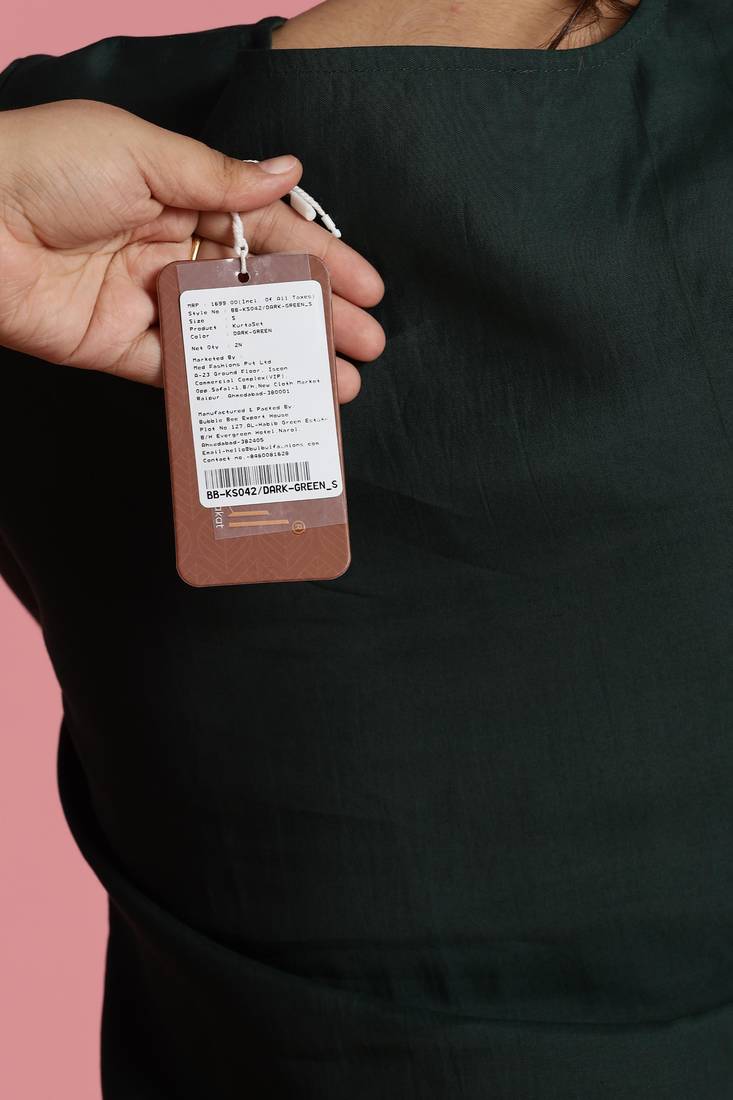 | Product Description | Add Timeless Elegance To Your Ethnic Wardrobe With This Dark Green Embroidered Chanderi Kurta Set, Crafted To Perfection For Festive And Special Occasions. The Kurta Features A Round Neckline With A Subtle V Slit, Beautifully Enhanced With Delicate Embroidery Along The Neck. Designed In Premium Chanderi Fabric, The Kurta Comes In A Flattering Thigh Length Cut With Side Slits For Easy Movement. The 3/4th Sleeves Include A Small Slit At The Hem, Detailed With Elegant Embroidery Along The Borders For A Refined Finish. The Set Is Paired With Matching Dark Green Bottoms, Completing A Coordinated And Graceful Look. |