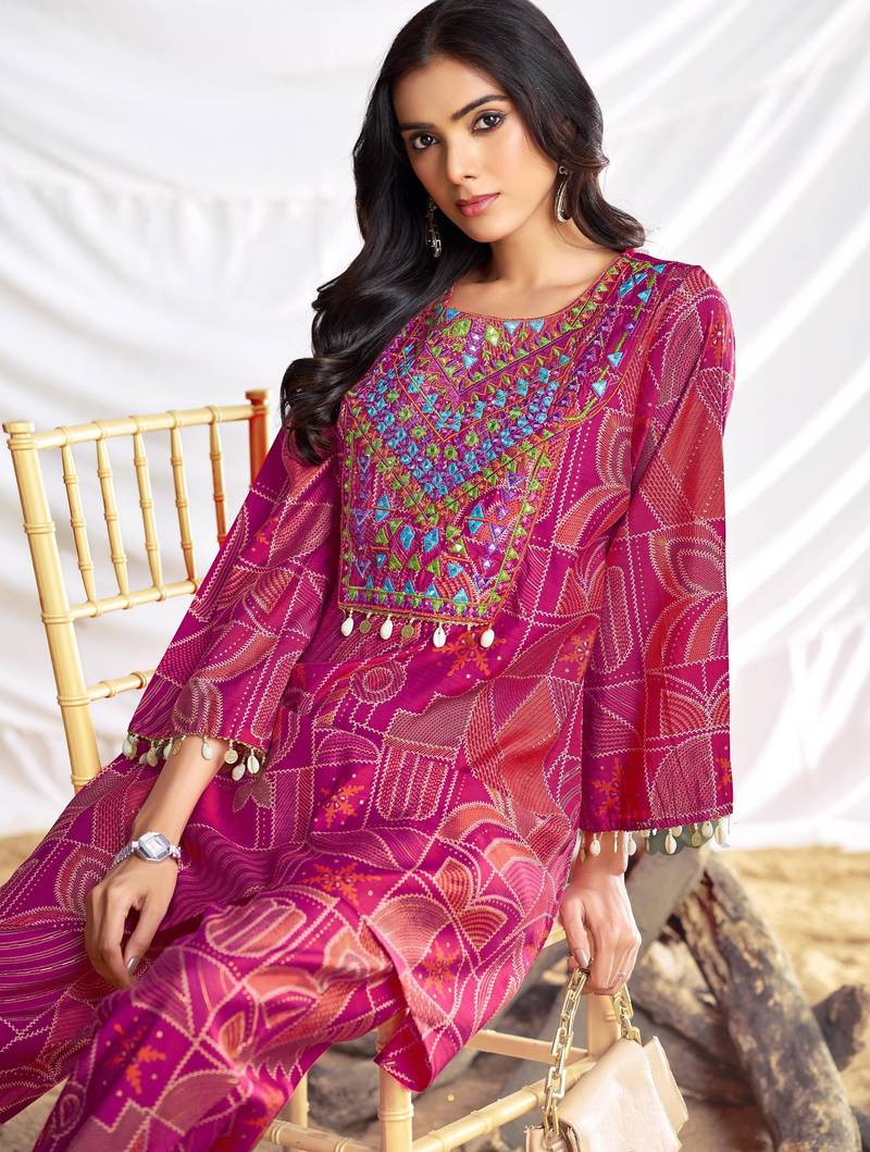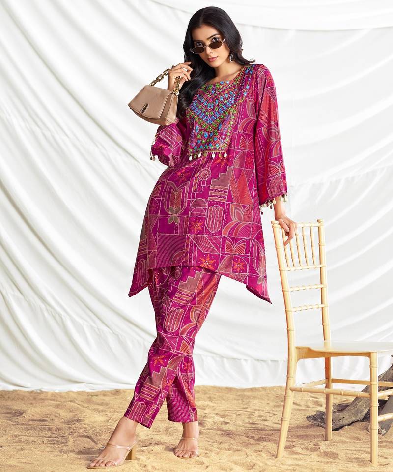 | Product Description | Ashka Fuchsia Modal Chanderi Co Ord Set