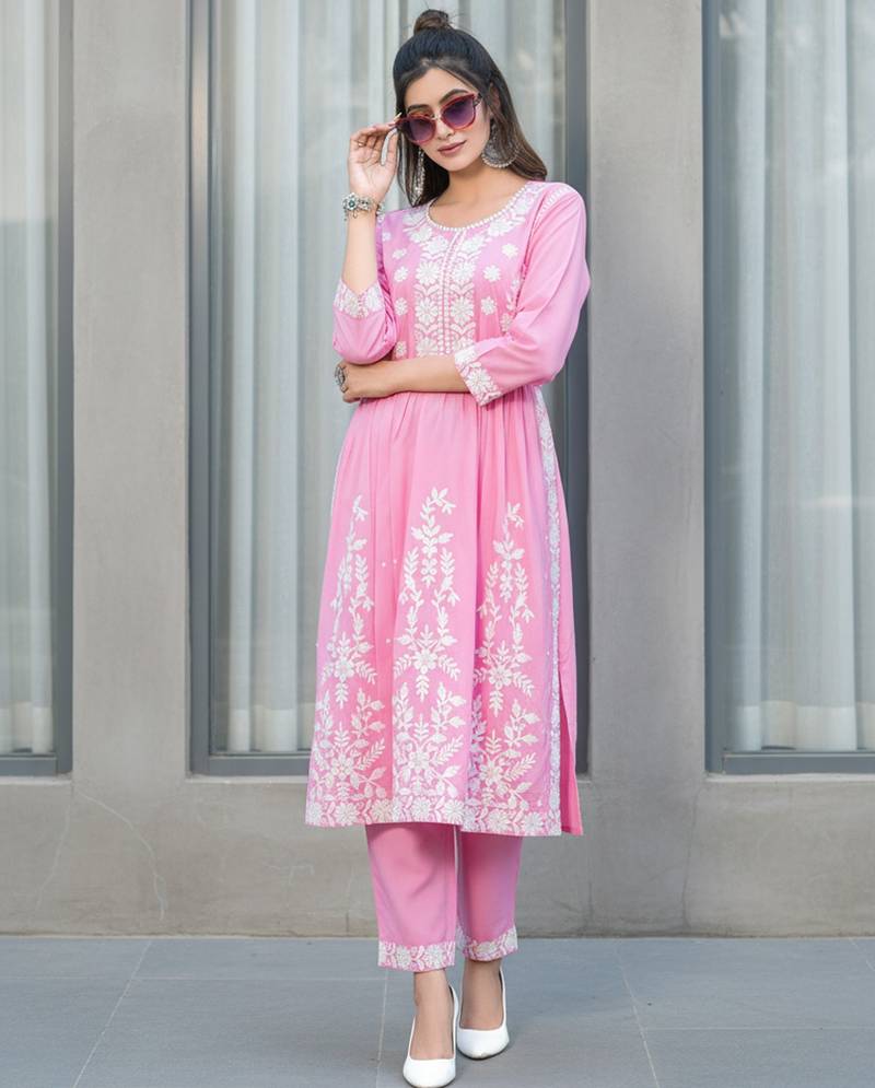 | Product Description | The Arushi Pink Kurta Set Brings A Fresh And Feminine Touch To Your Ethnic Wardrobe. Crafted From Soft, Breathable Rayon Fabric, This Elegant Two Piece Ensemble Features Beautiful Lucknawi Embroidery Across The Kurta That Adds Refined, Traditional Artistry To Its Vibrant Pink Hue. Designed For Comfort Without Compromising Style, It’s A Versatile Pick For Festive Occasions, Casual Gatherings, And Semi Formal Events, Offering A Graceful Blend Of Classic Detail And Everyday Ease. |