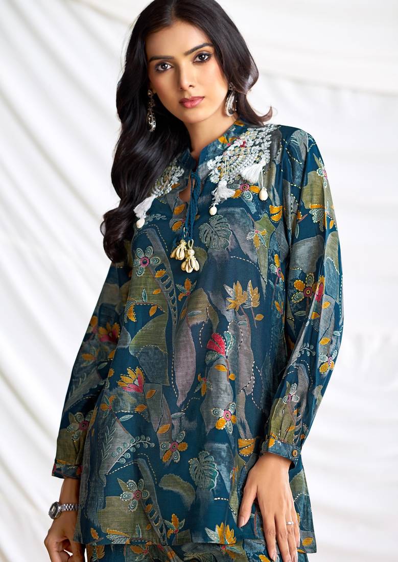 | Product Description | Nilisha Teal Modal Chanderi Co Ord Set Stylish And Refined