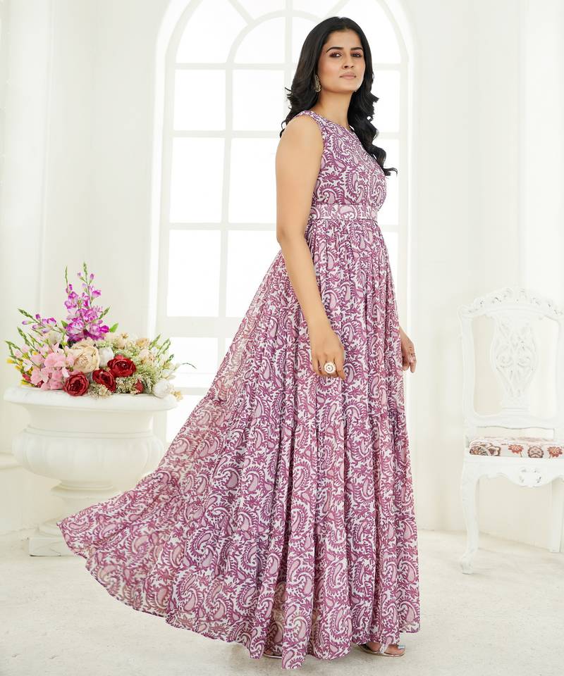| Product Description | This Elegant Mauve Maxi Dress Features A Timeless Paisley Print With A Flattering Round Neckline And Sleeveless Silhouette. Designed With A Fitted Waist And Voluminous Flared Hem, It Offers Graceful Movement And A Refined Ethnic Appeal—Perfect For Festive Days And Casual Celebrations. |