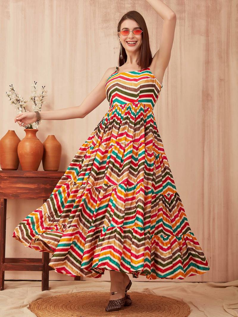 | Product Name | Women Multicolour Chevron Printed Spaghetti Strap Tiered Maxi Dress | |