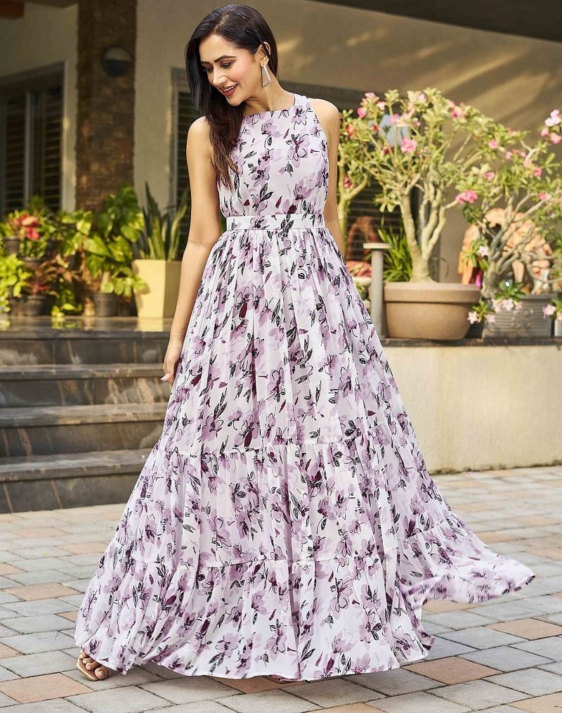 | Product Description | This Graceful Lavender Maxi Dress Features A Delicate Floral Print Paired With A Sleeveless Silhouette And A Classic Round Neckline. Designed With A Fitted Bodice And A Beautifully Flared Umbrella Style Skirt, It Offers Effortless Elegance And Breezy Comfort—Perfect For Daytime Occasions And Summer Outings. |
