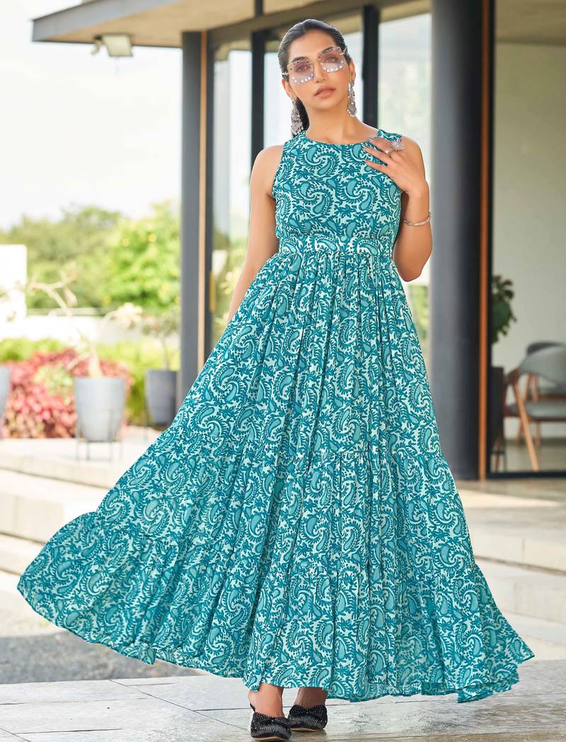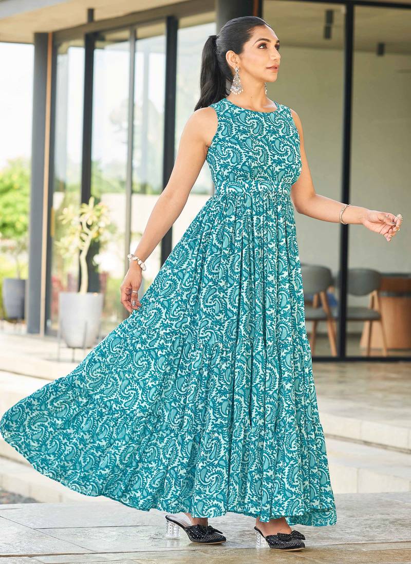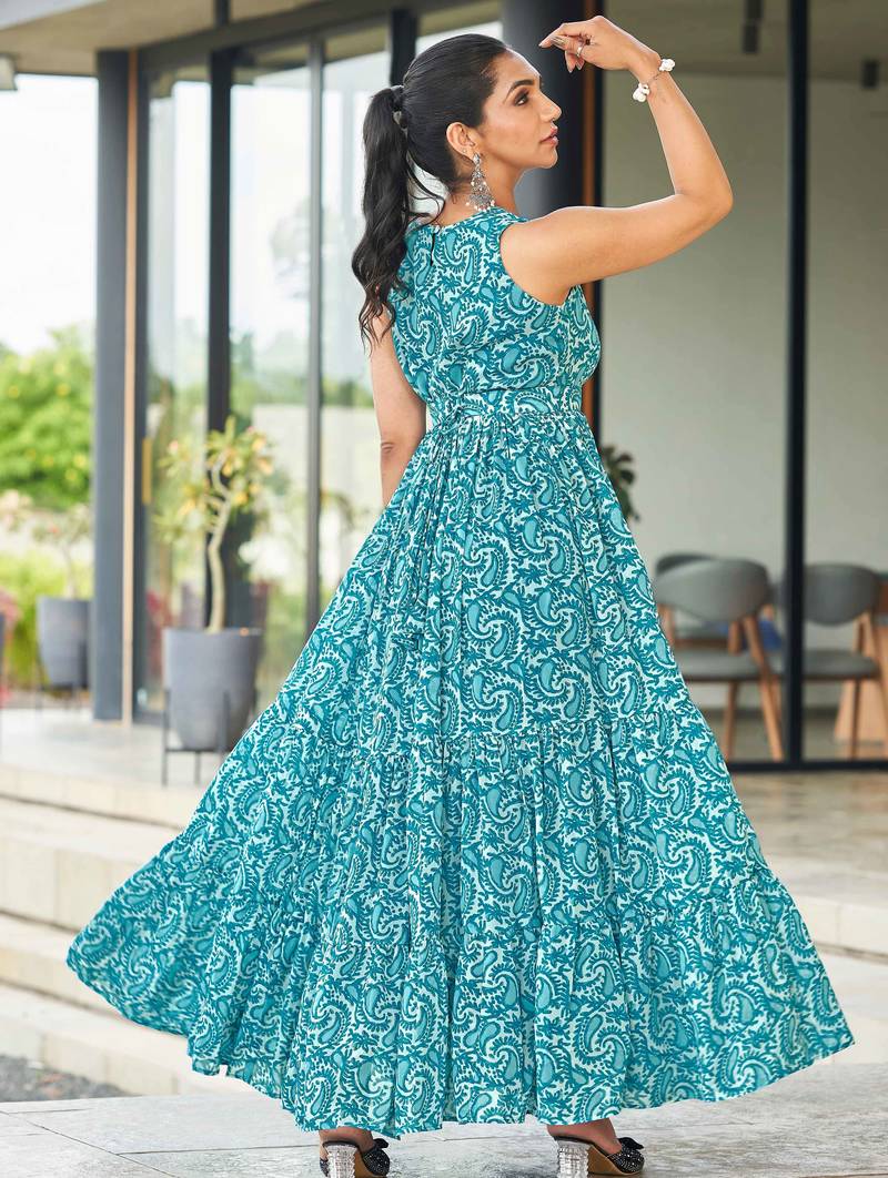 | Product Name | Women Turquoise Blue Paisley Printed Sleeveless Round Neck Maxi Dress | |