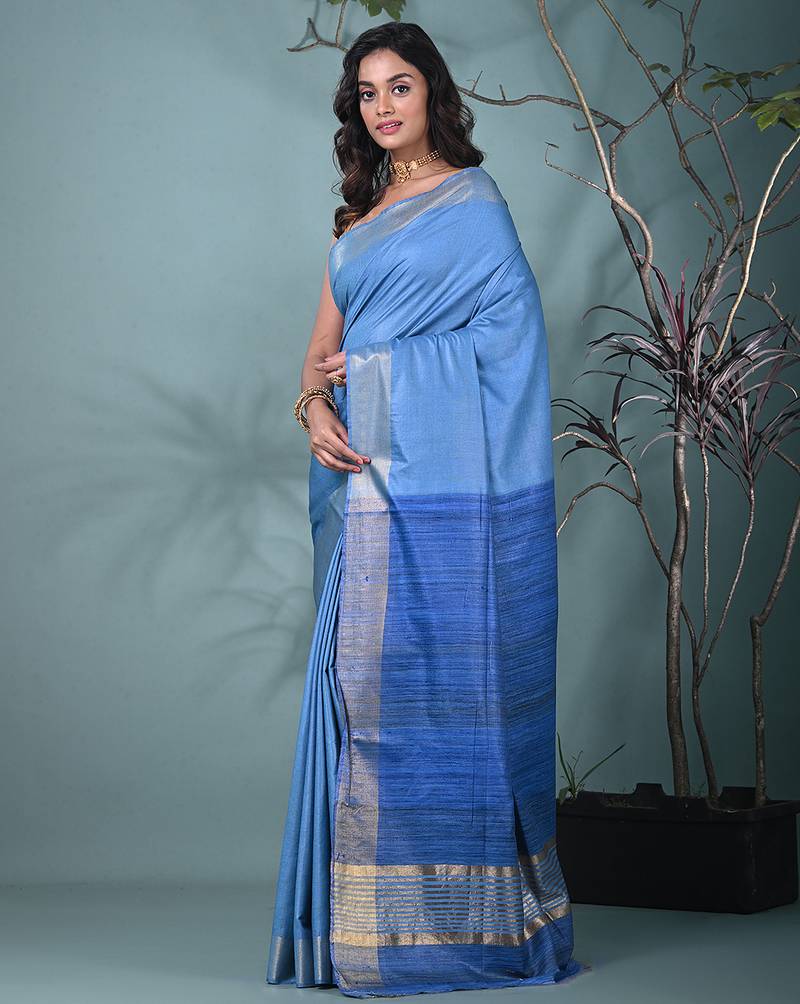 | Product Name | Baby Blue Viscose Saree With Gheecha Pallu And Golden Border | |