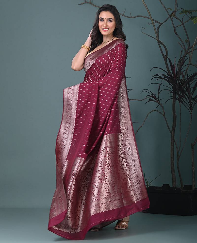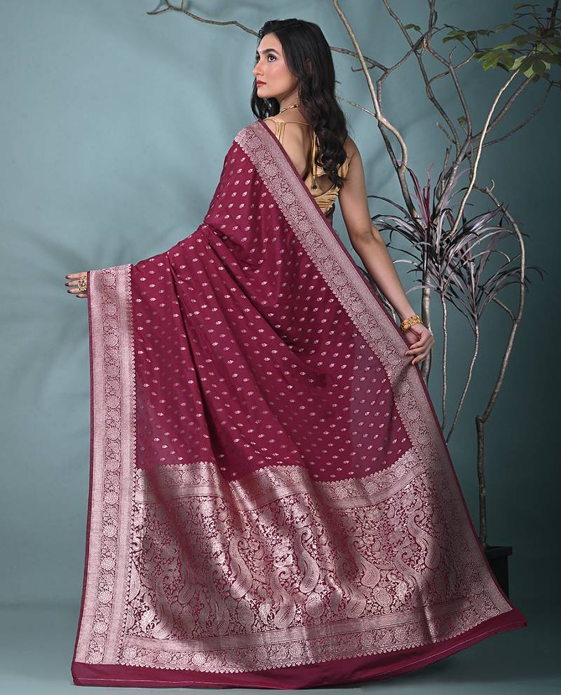 | Product Name | Elegant Fuchsia Georgette Saree With Intricate Silver Zari Work | |