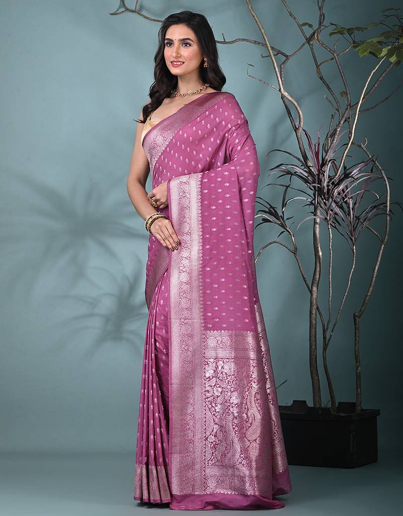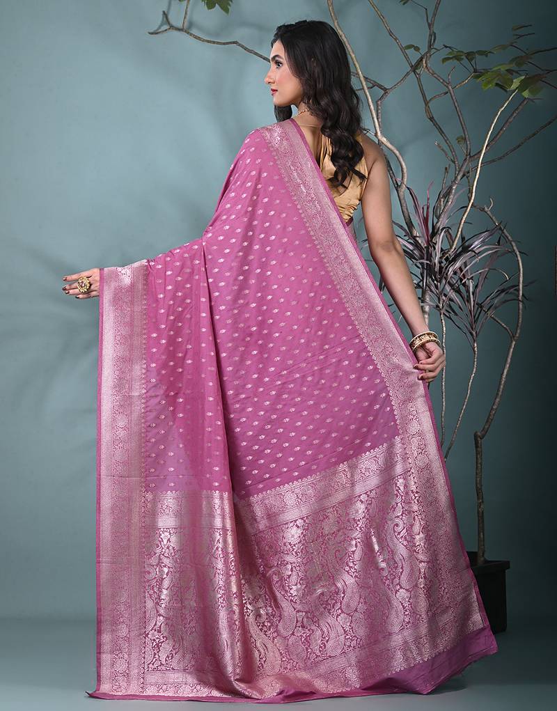 | Product Name | Elegant Mauve Georgette Saree With Intricate Silver Zari Work | |