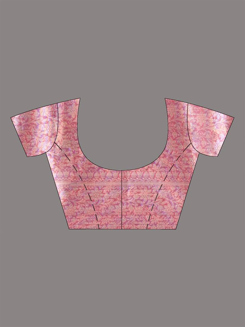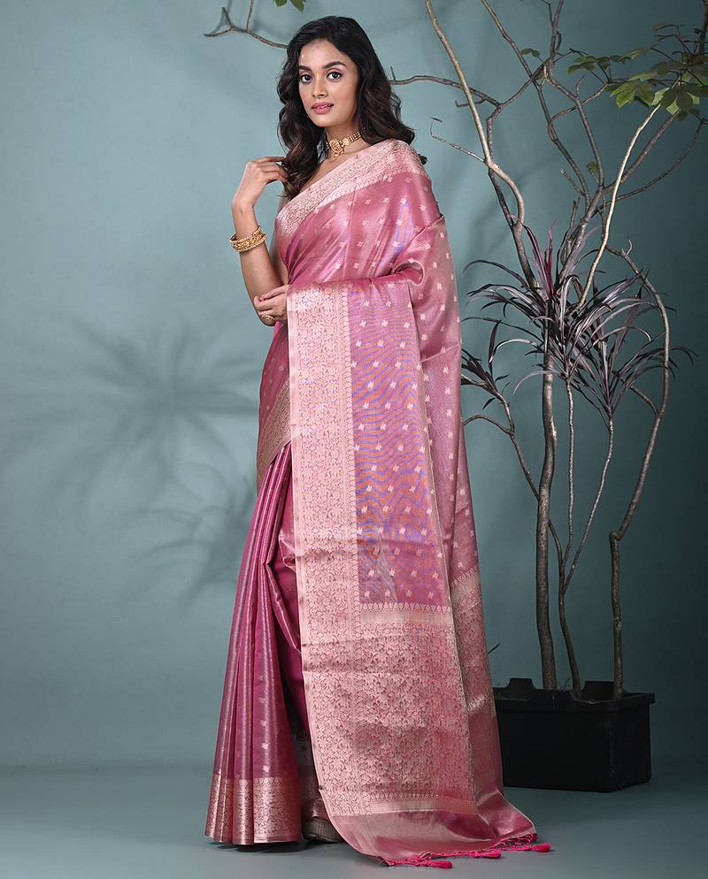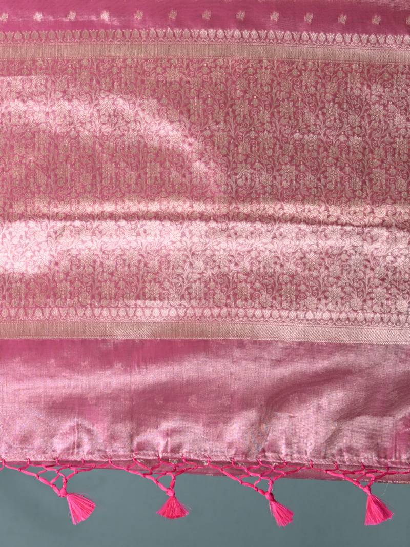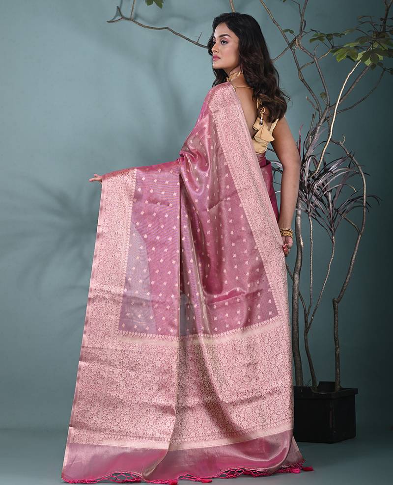 Elegant pink tissue saree with intricate border