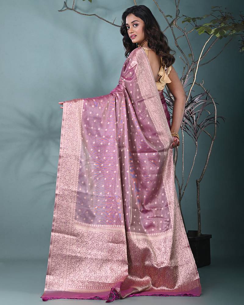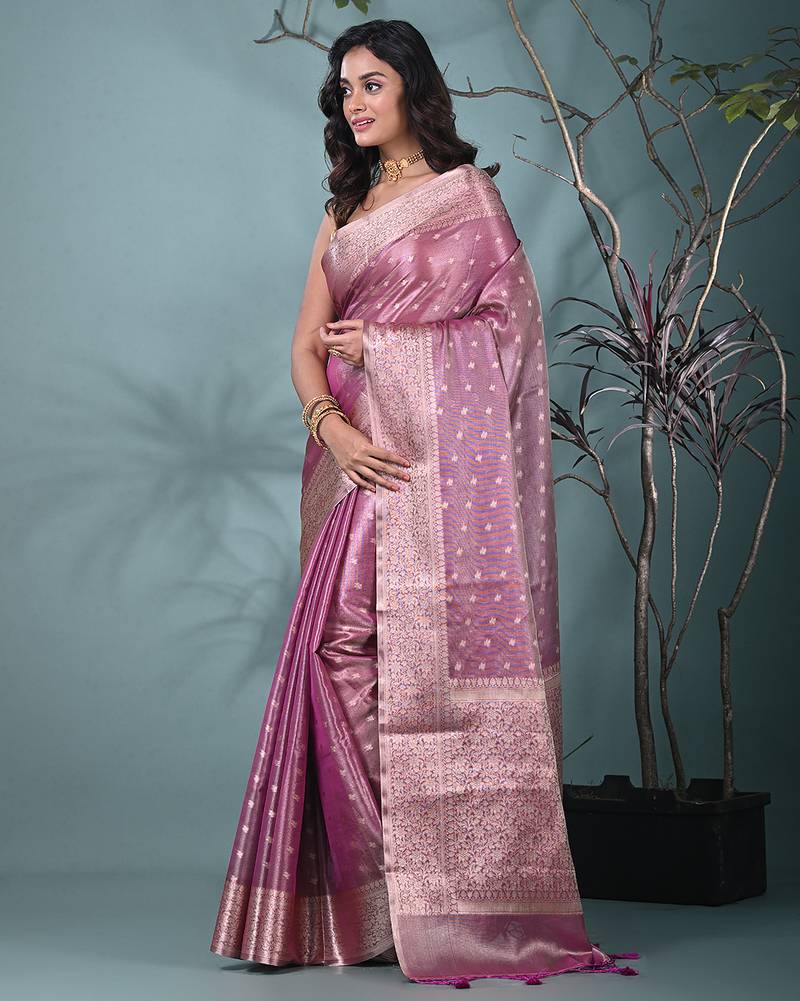 Elegant purple tissue saree with intricate border