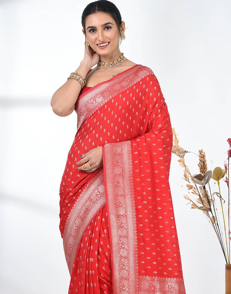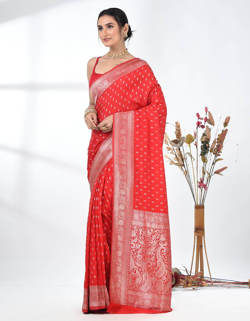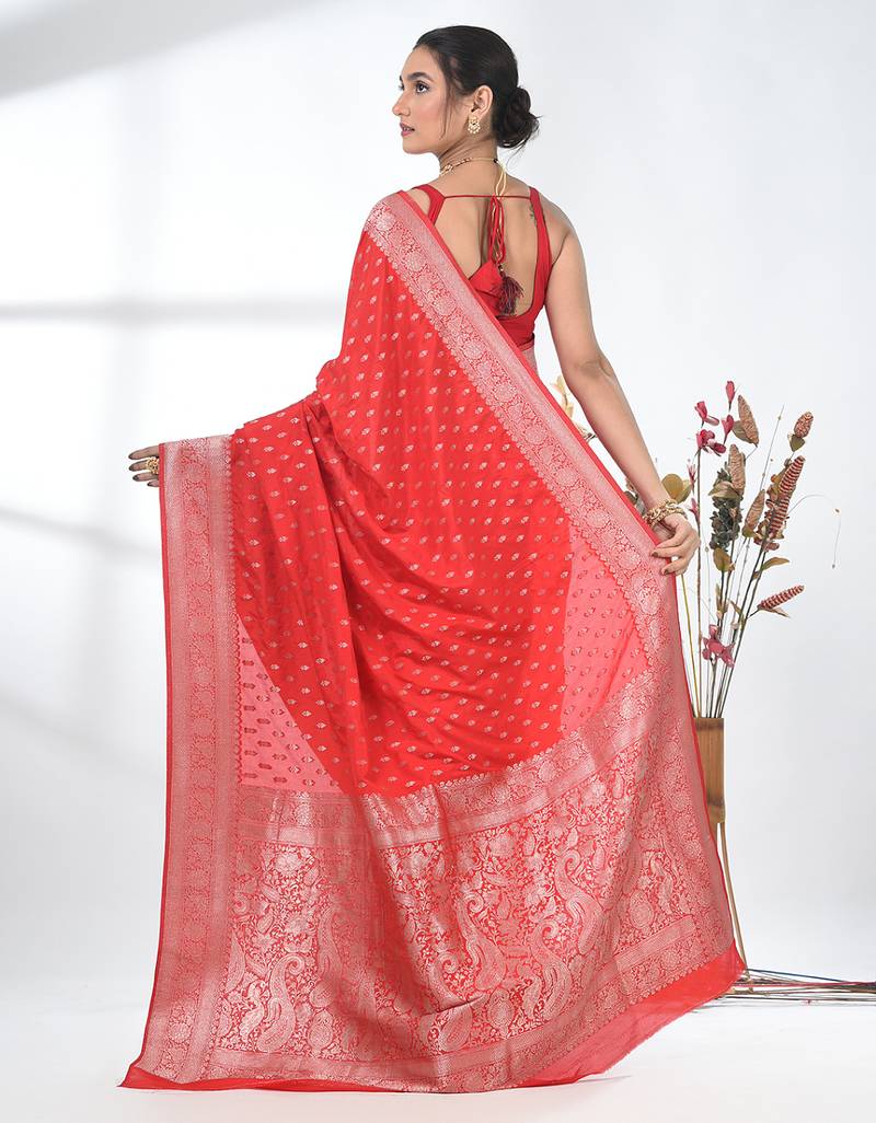 | Product Name | Elegant Red Georgette Saree With Intricate Silver Zari Work | |