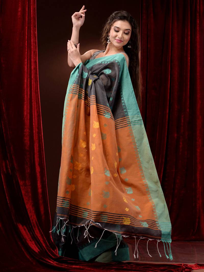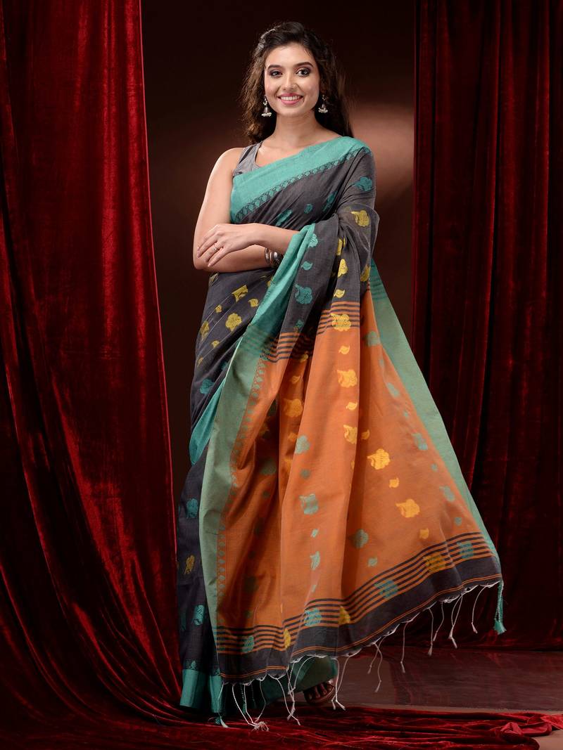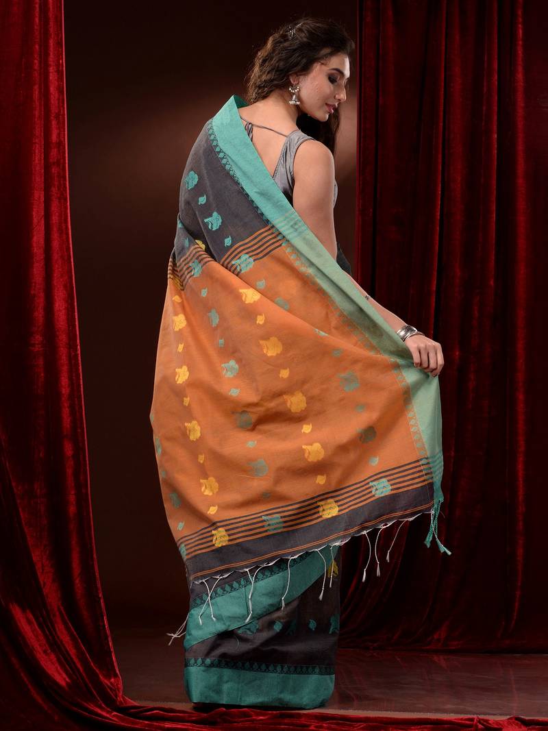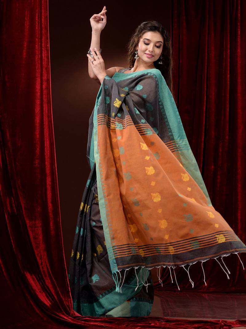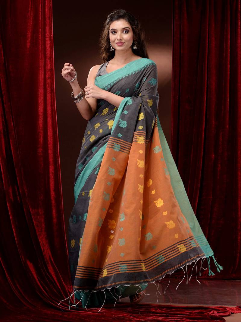 | Product Name | Grey Cotton Handspun Saree With Woven Floral Motifs | |