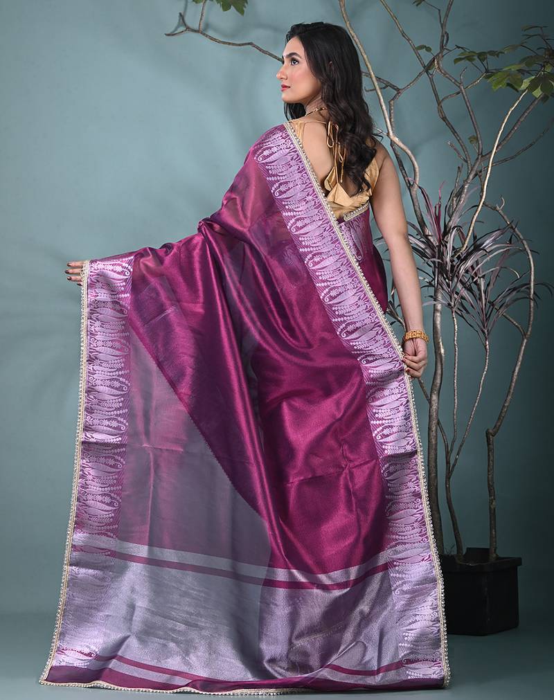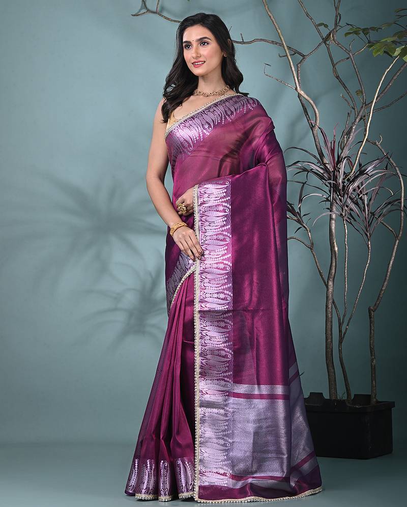 | Product Name | Purple Tissue Saree With Intricate Silver Zari Border | |