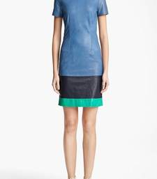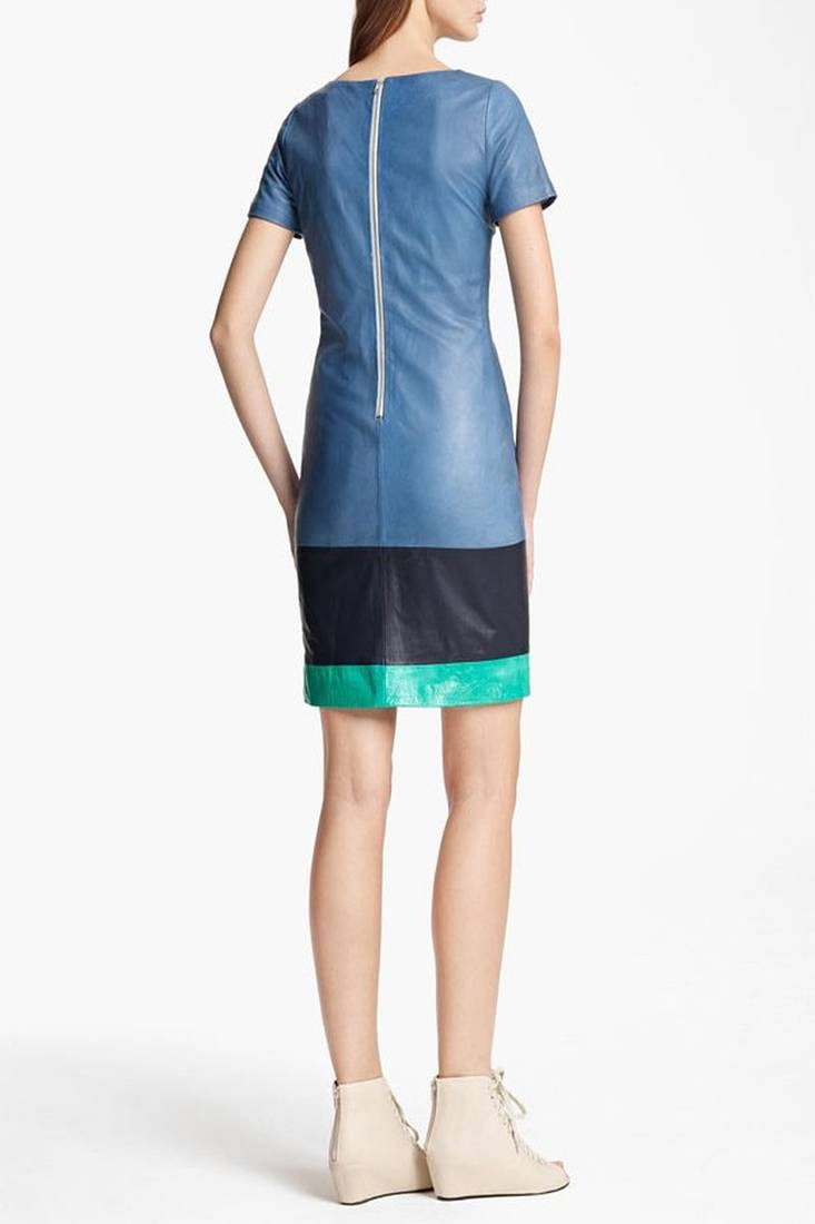 | Product Name | Genuine Lambskin Women's Shift Dress Color Block Short Sleeve Mini Dress | |