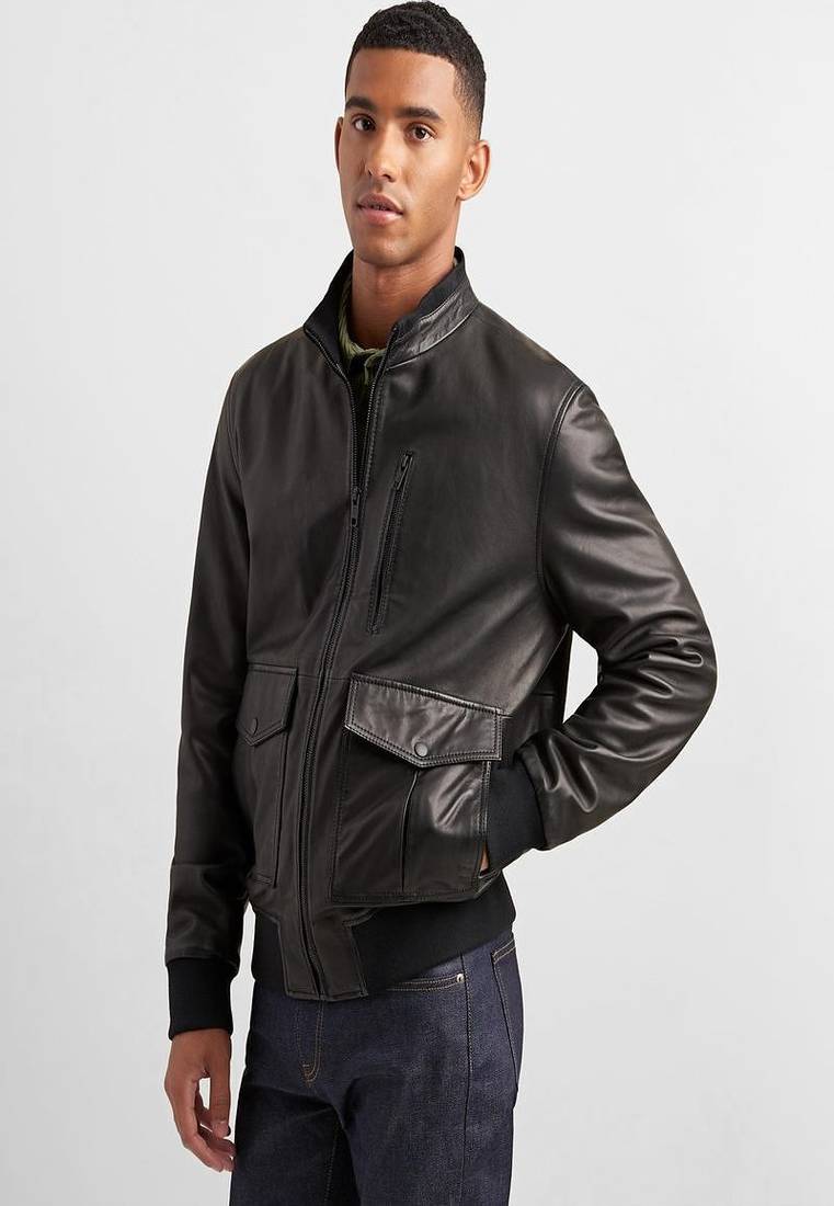 | Product Name | Genuine Soft Leather Bomber Rib Waist Lambskin Men's Leather Jacket Black Motor Jacket | |