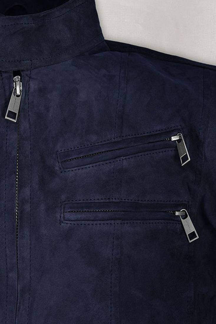 Men's blue suede leather leather jacket slim fit motor style café racer