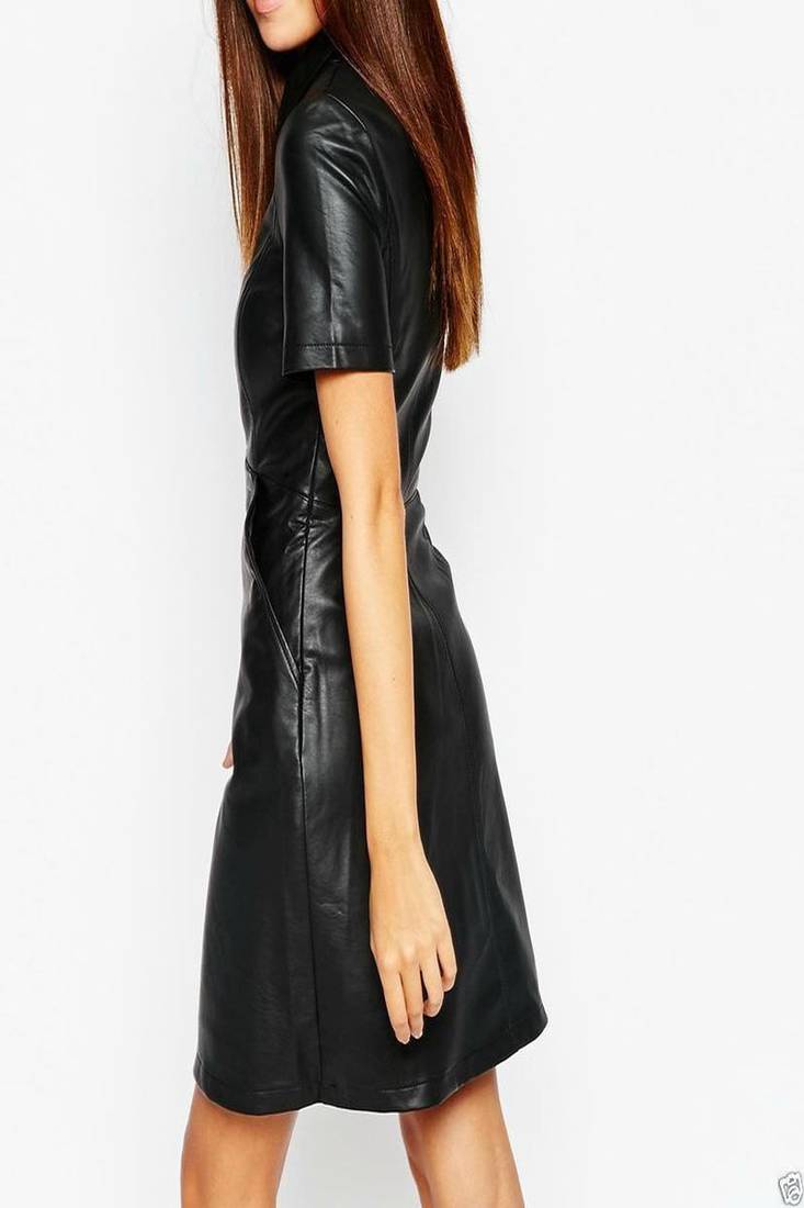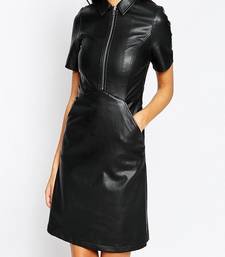 | Product Name | Women’s Black Lambskin Leather Dress Zip Front Shirt Dress With Pockets | |