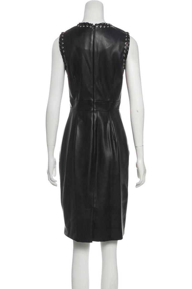 | Product Name | Women’s Black Lambskin Leather Sleeveless Dress With Studded Neckline | |
