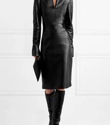 | Product Description | Women’s Genuine Black Lambskin Leather Long Sleeve Midi Dress With V Neck Key Features: