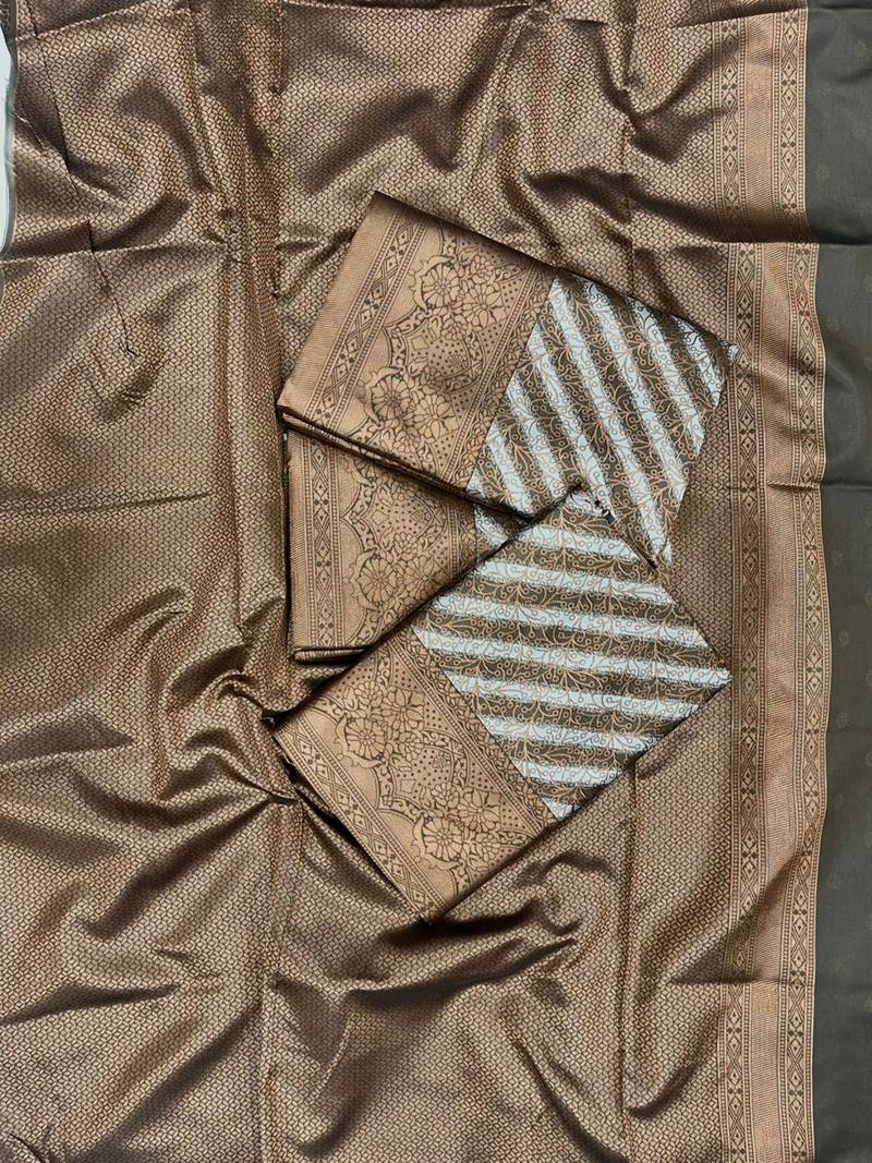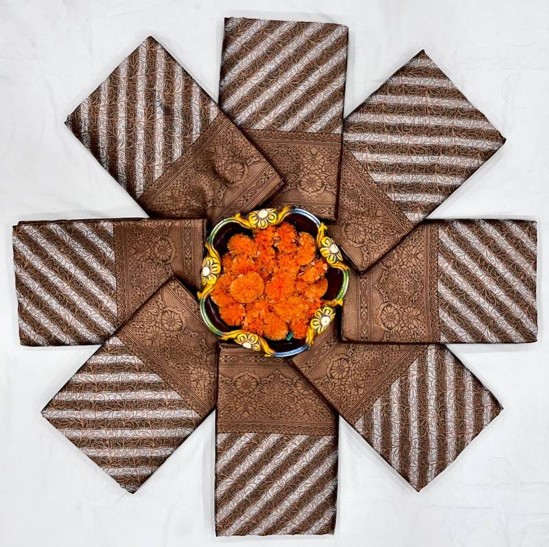 | • | Saree | : | Color- Brown / Fabric- Art Silk |