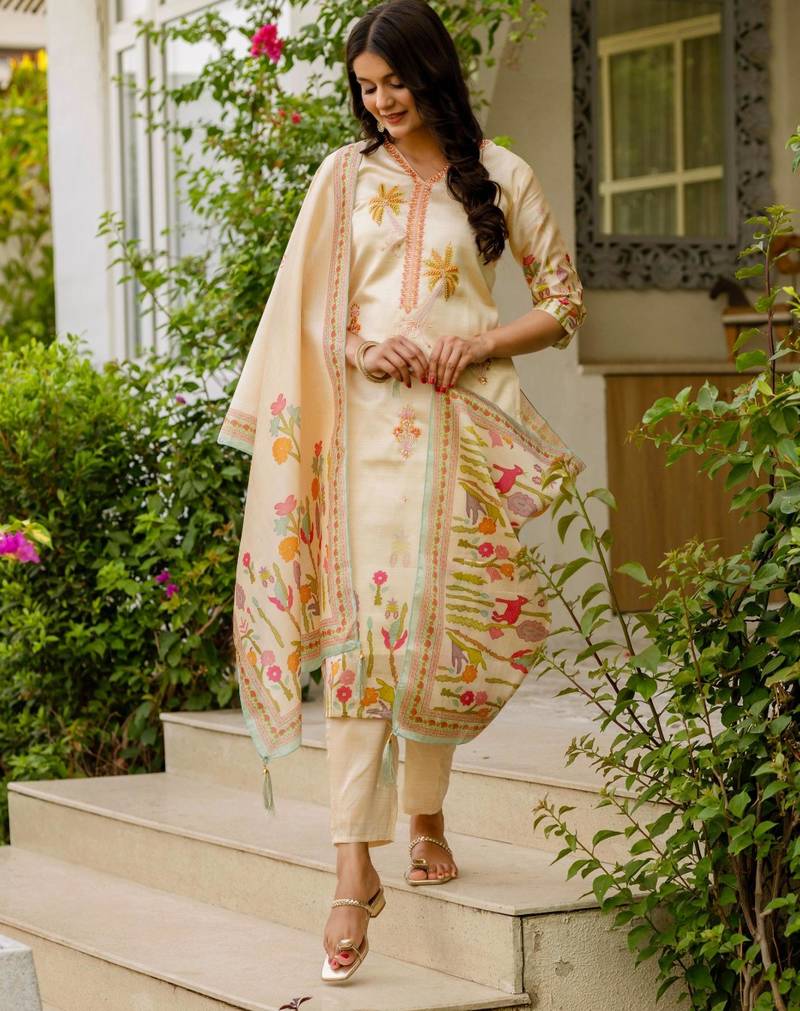 | Product Name | Beige Cotton Silk Embroidered Kurta Set | |