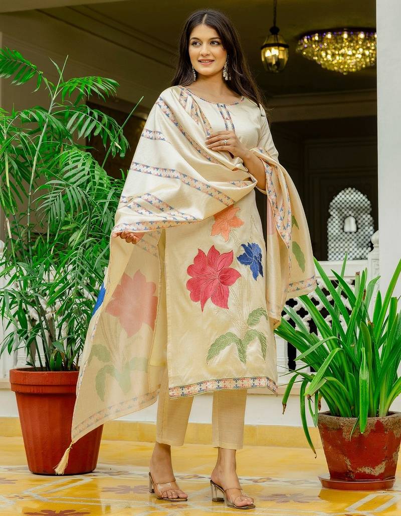 | • | Dupatta | : | Color- Beige / Fabric- Silk Blend |