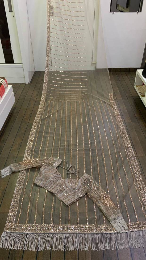 | Product Name | Beige Net Saree With Sequin Stripes | |