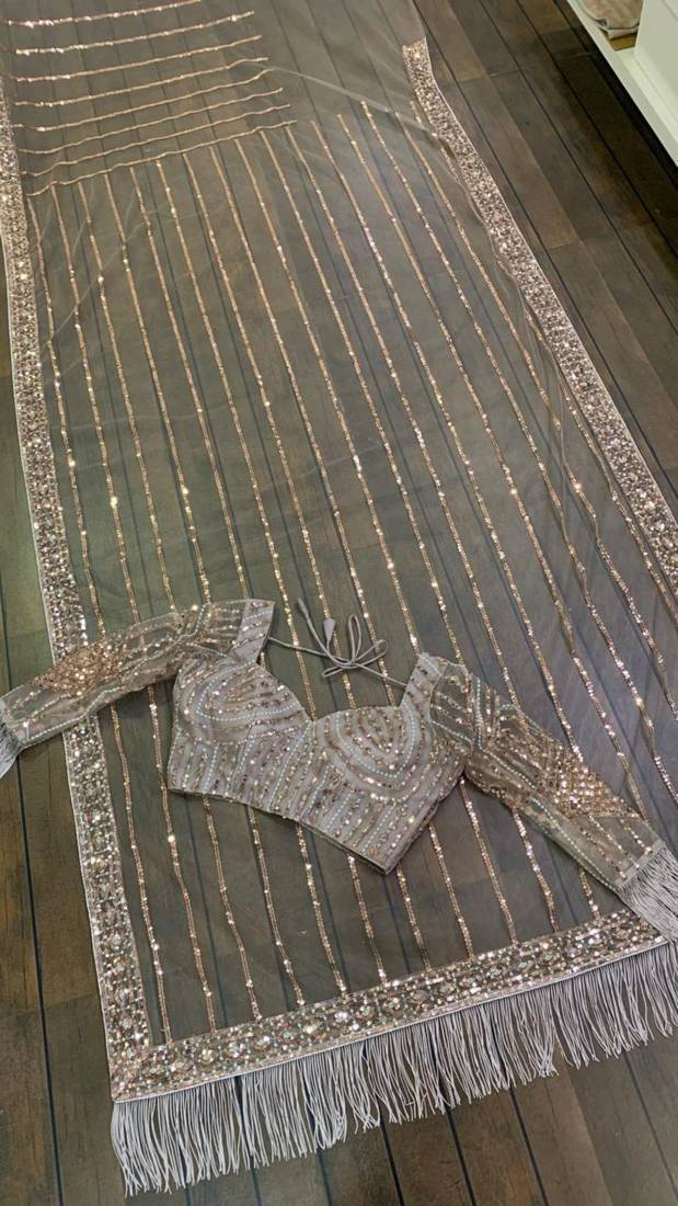 | • | Saree | : | Color- Grey / Fabric- Net |