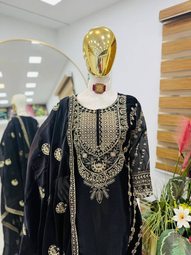 | Product Description | Make A Bold Impression With This Black Sharara Suit Featuring Rich Gold Embroidery And Intricate Detailing. Designed With A Classic Kurta, Flared Sharara, And Matching Dupatta, This Outfit Exudes Luxury. Perfect For Weddings, Receptions, And Evening Events With A Timeless, Sophisticated Appeal. |