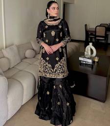 | • | Dupatta | : | Color- Black / Fabric- Silk Blend |