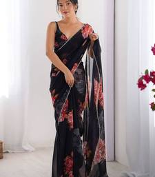 Black floral print georgette saree