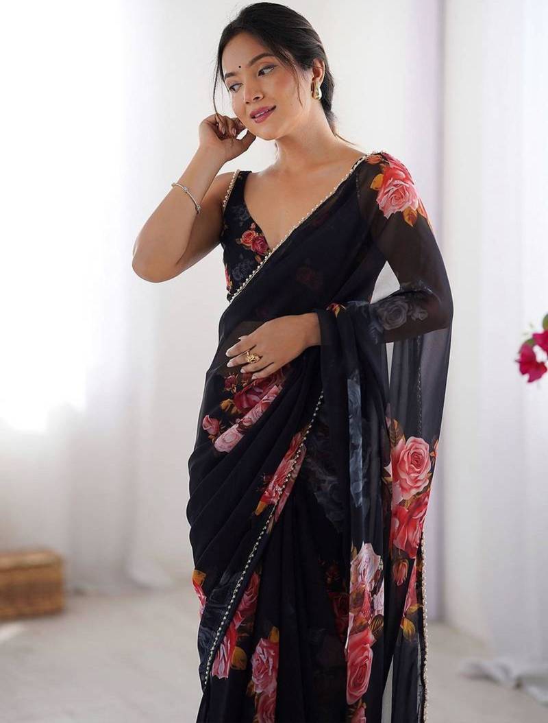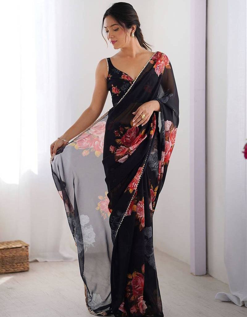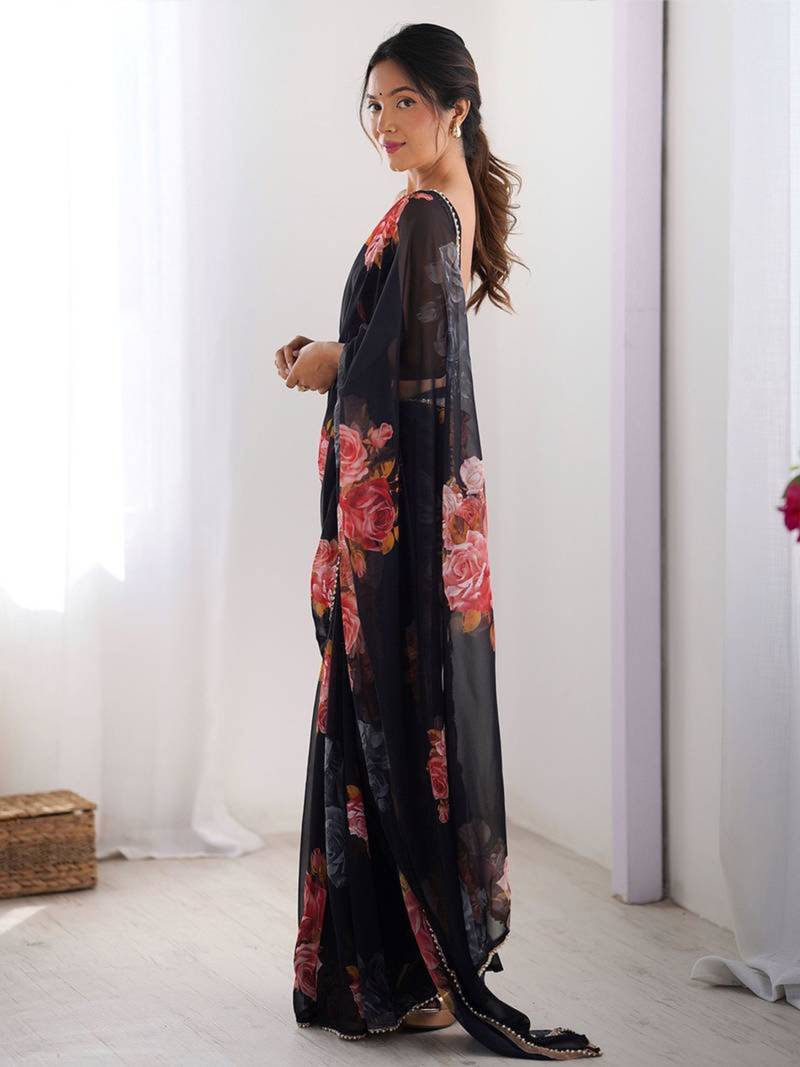| Product Name | Black Floral Print Georgette Saree | |
