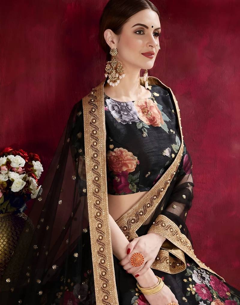 Black floral printed lehenga choli
