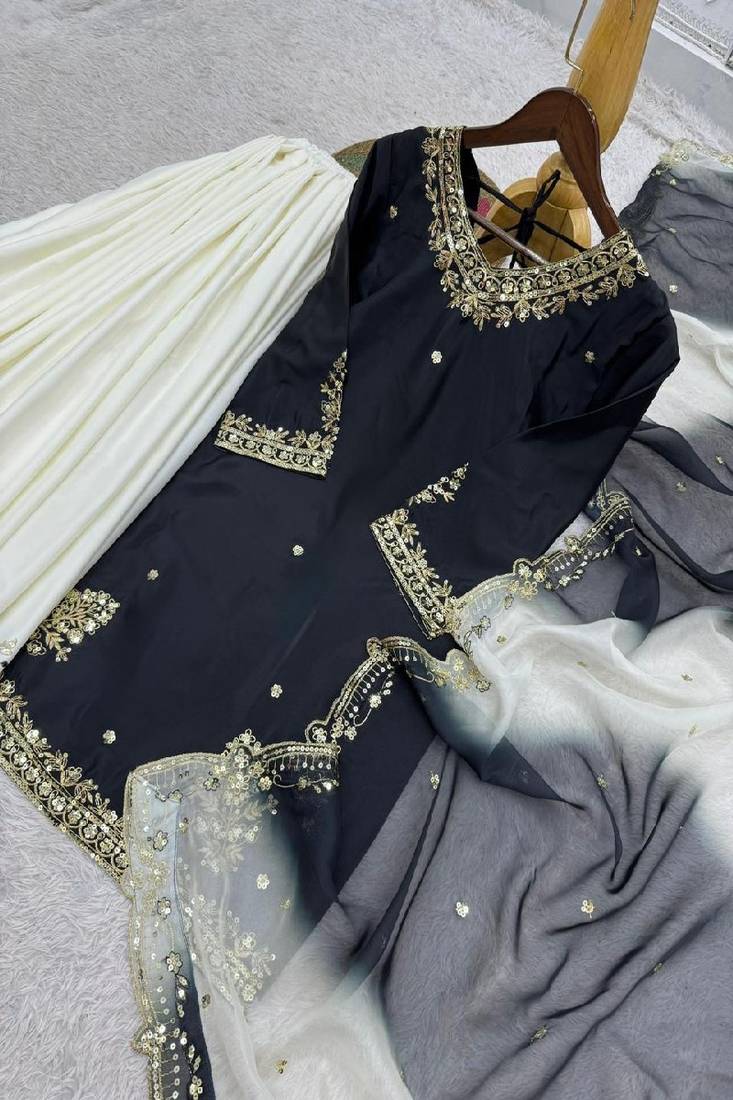 | Product Description | Bright And Festive, This White & Black Anarkali Set Offers A Structured Bodice And Elegant Flare. Paired With A Matching Dupatta, It Creates A Refined Ethnic Look. Perfect For Weddings, Sangeet Nights, And Grand Celebrations. |