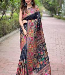 Product Name Black Woven Pashmina Silk Blend Saree With Blouse Piece