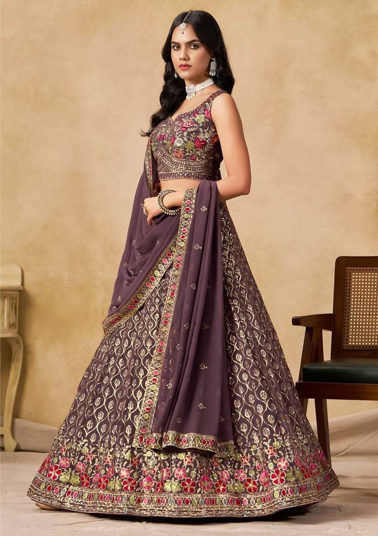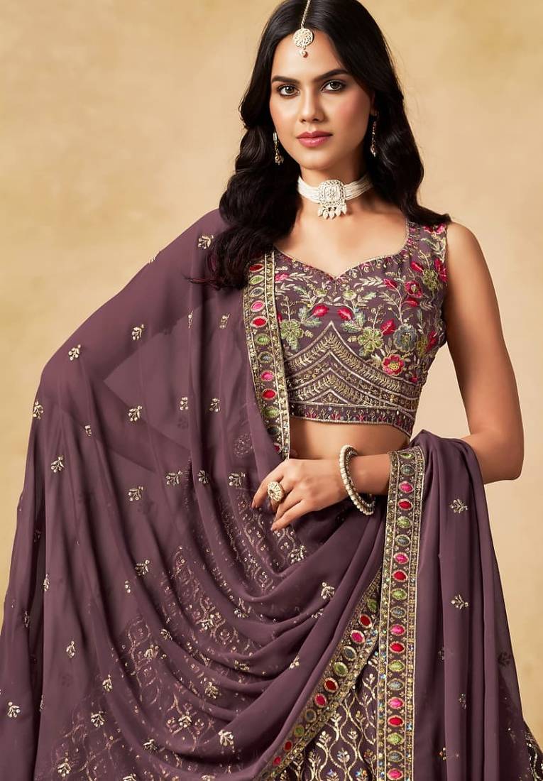 Light purple designer embroidered lehenga