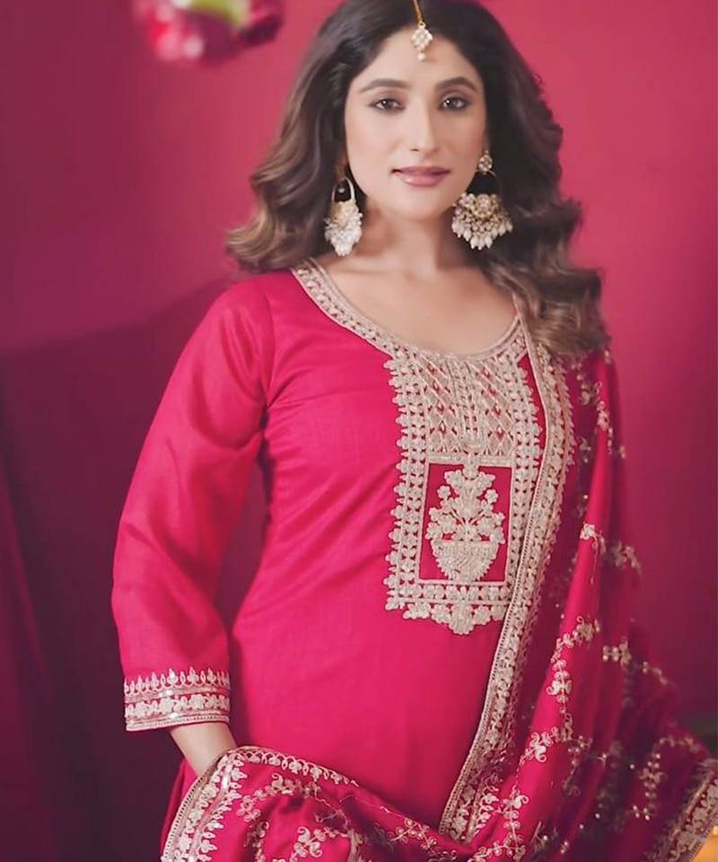 | Product Name | Chinon Pink Zari Work Salwar Suit | |