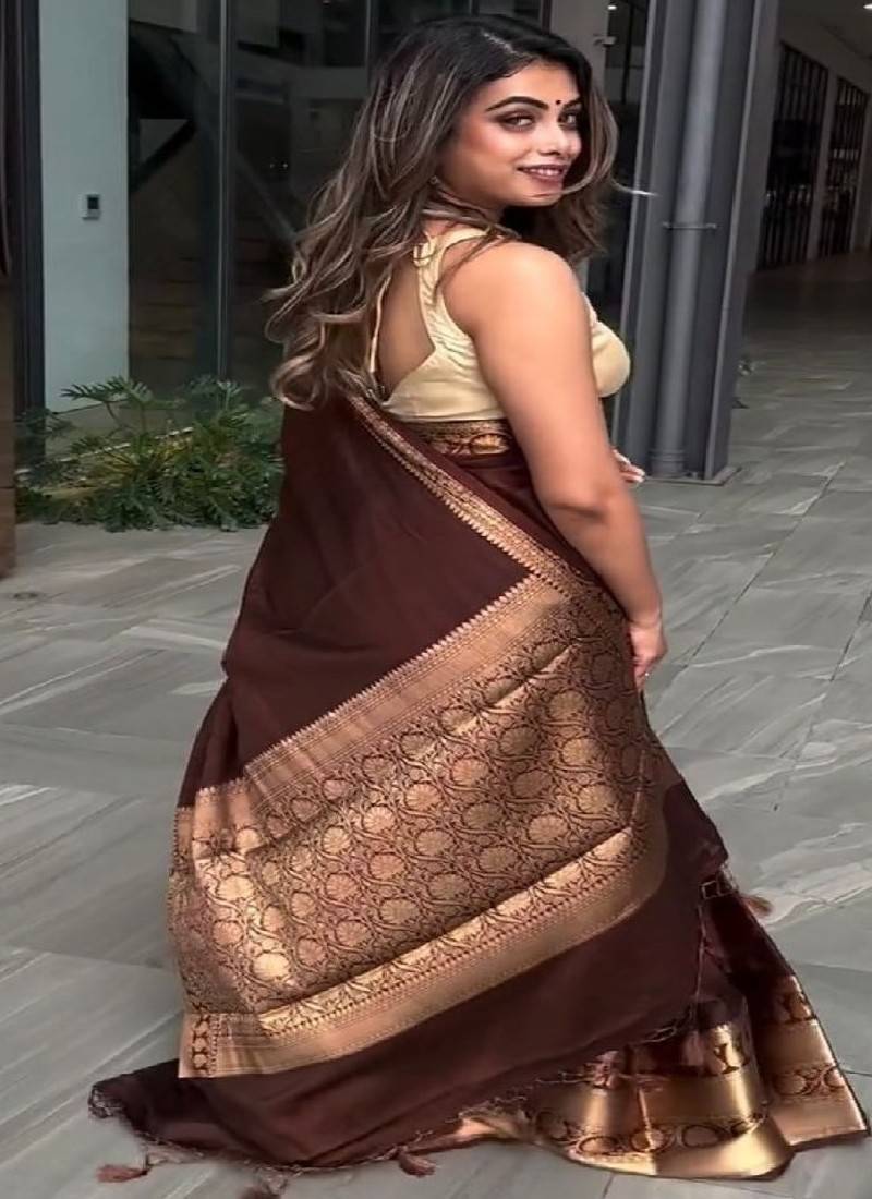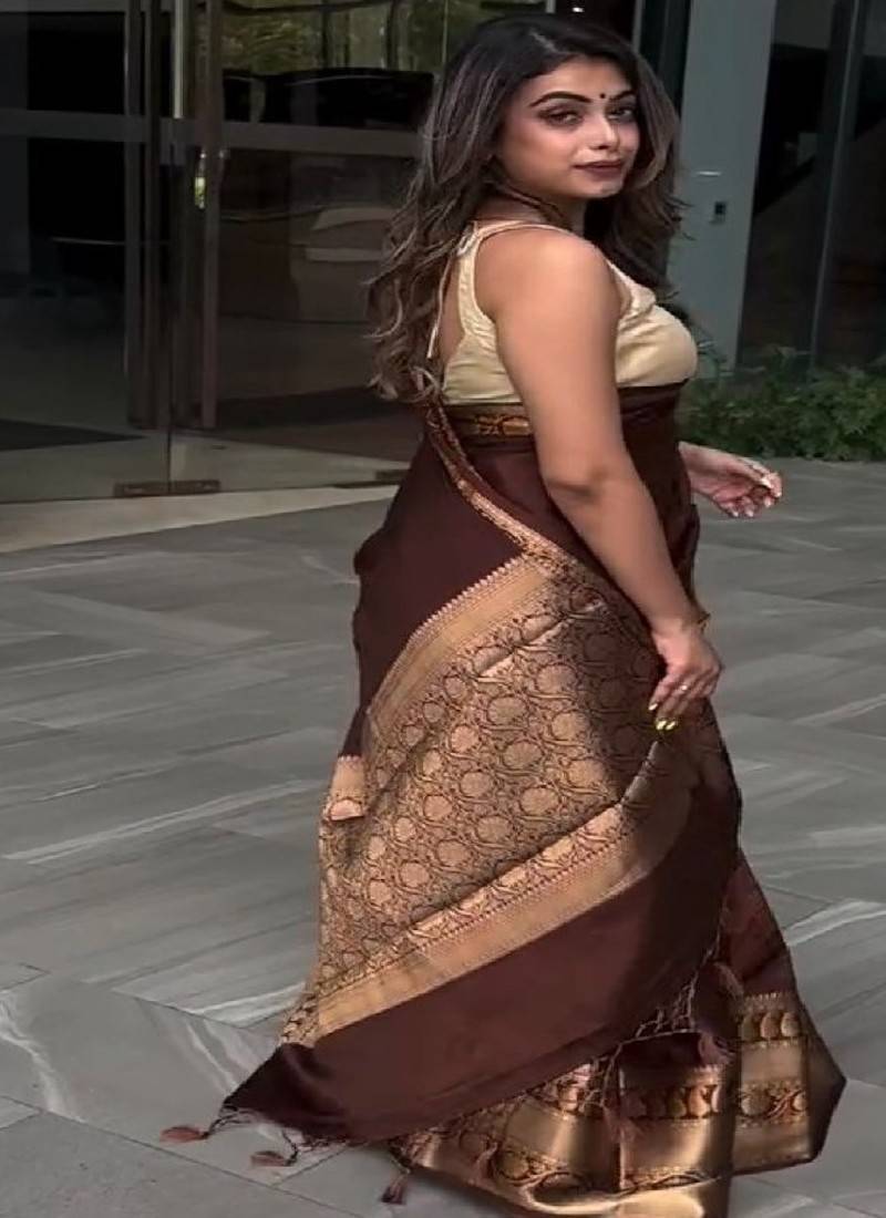 Classic brown traditional silk blend saree
