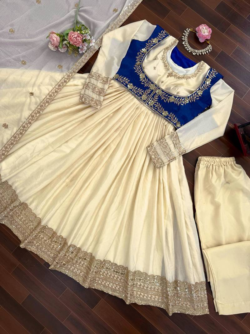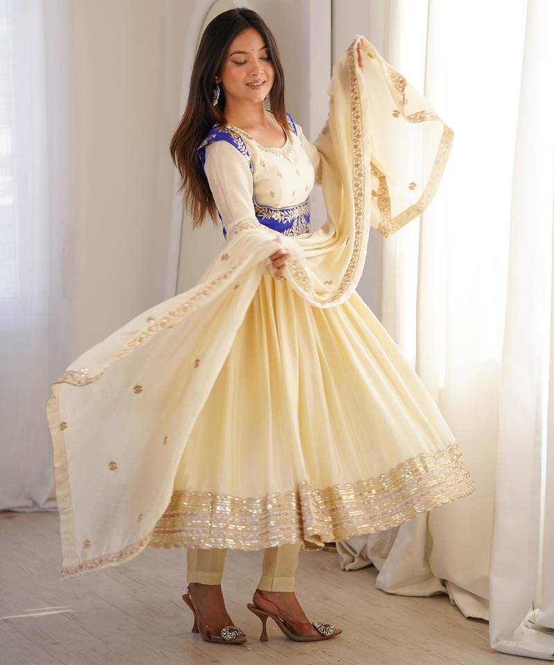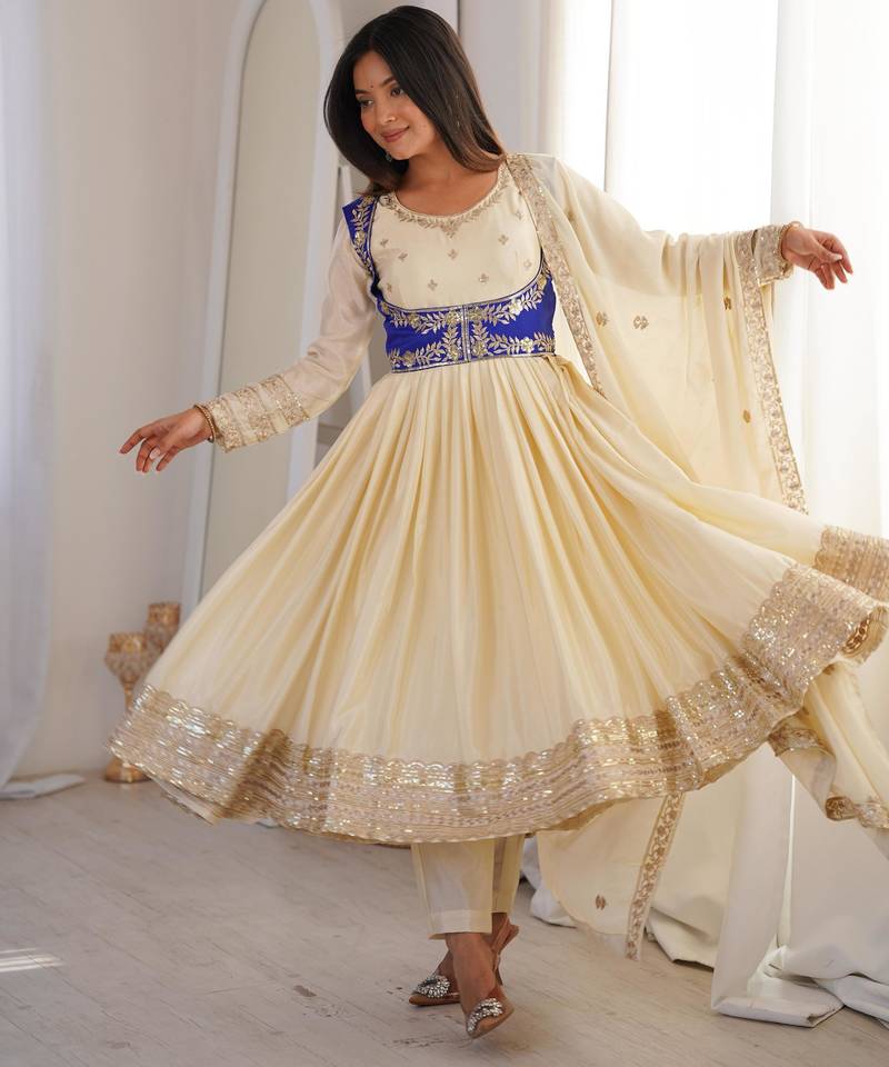 Cream anarkali suit stitched