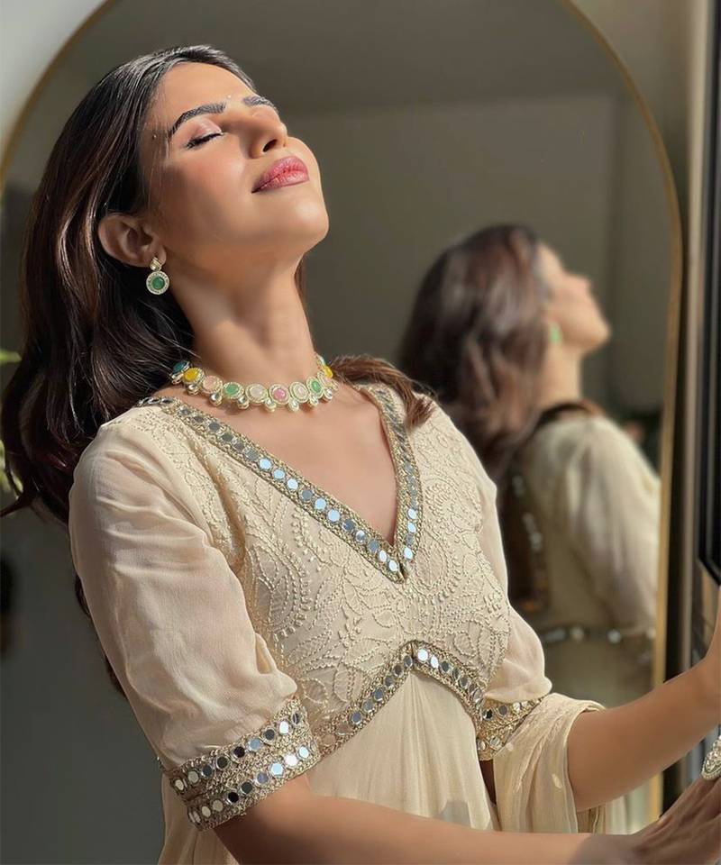 | Product Description | Exude Timeless Elegance In This Stunning Cream Anarkali Suit. Crafted From Premium Georgette, The Bodice Features Intricate Thread Embroidery Accented By Shimmering Mirror Work Along The Neckline And Waist. Paired With A Matching Dupatta, This Ethereal Ensemble Is Perfect For Weddings And Festive Celebrations Seeking A Sophisticated, Radiant Aesthetic. |