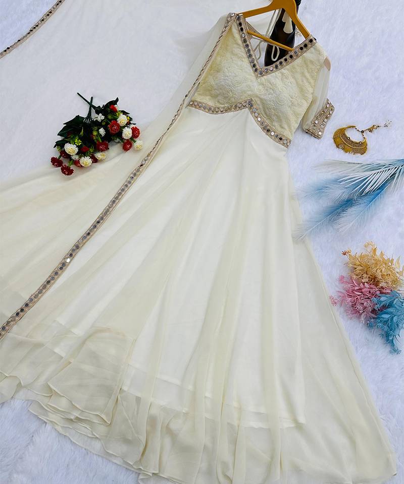| Product Name | Cream Mirror Work Georgette Gown. | |