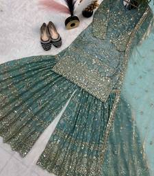 | Product Description | Experience Ethereal Beauty In This Pastel Green Sharara Set. The Short Kurti And Flared Bottoms Feature Heavy Tonal Threadwork And Shimmering Sequins, Creating A Cohesive, High Fashion Silhouette. Its Scalloped Hemlines And Matching Net Dupatta Offer A Graceful Drape, Ensuring You Remain The Center Of Attention At Any Gala. |