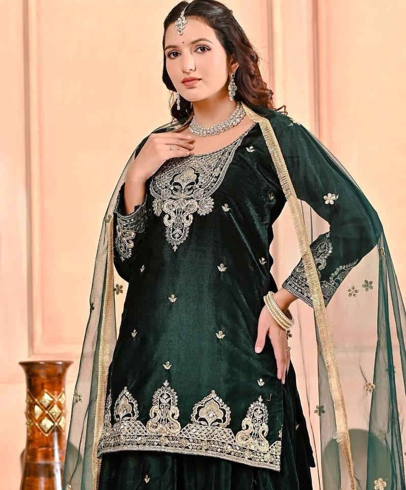 | Product Name | Dark Emerald Velvet Sharara Ensemble | |